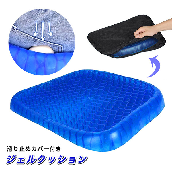 クッション ジェルクッション ジェル ゲル ゲルクッション 衝撃吸収 座布団 腰痛 腰痛対策 ゲルシート 通気性抜群 ムレにくい ハニカム構造 滑り止めクッションカバー付き カバー水洗い可能 清潔 高弾性ゲル デスクワーク ドライブ 座り作業 カバー付き