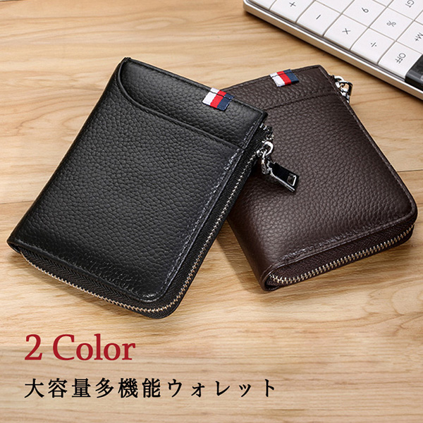 財布 ウォレット 2つ折り財布 メンズ財布 メンズウォレット 男性 シンプル オシャレ 多機能 大容量 上品 ベーシック L字ファスナー 収納力抜群 合皮レザー おしゃれ コンパクト 持ち運び便利 ブラック ダークブラウン
