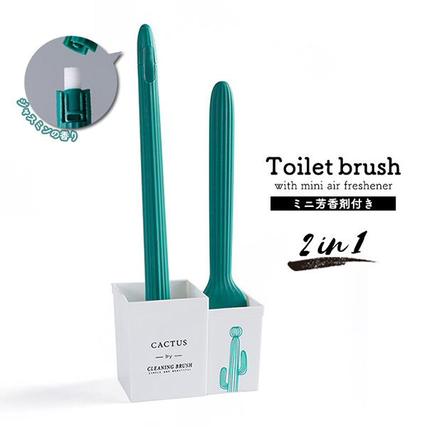 トイレブラシ トイレブラシセット 芳香剤付き 2in1 大サイズ 小サイズ 大ブラシ 小ブラシ 洗いやすい 掃除 トイレ掃除 仕切り付き ジャスミンの香り ミニブラシ かわいい おしゃれ サボテン シンプル インテリア 掃除用具