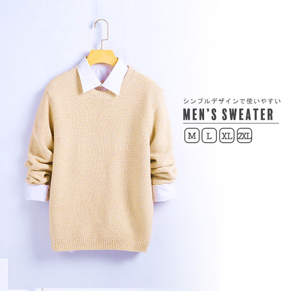 セーター メンズ ニット シンプル 秋 冬 カジュアル リブ編み ベージュ クルーネックセーター 使いやすい 柔らかい着心地 着心地抜群 ふんわり 寒さ対策 あったか 防寒 ジャガードステッチ シワになりにくい 型崩れしにくい