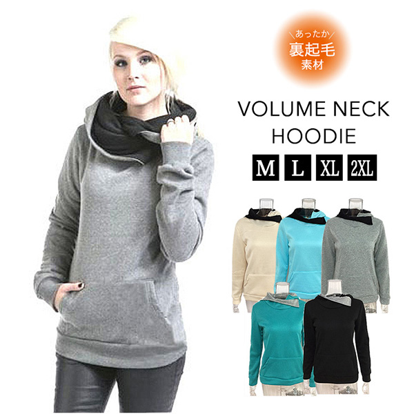 パーカー レディース ネックパーカー ボリュームネック プルオーバー ボリュームネックパーカー シンプル 無地 カラー豊富 合わせやすい 着回し抜群 裏起毛 あったか 着心地抜群 バイカラー 小顔効果 マフポケット
