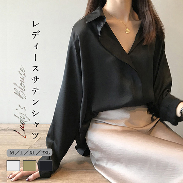 シャツ ブラウス トップス レディース 長袖 サテンシャツ サテン素材 きれいめ カジュアル 大人かわいい 上品 ベーシック 着回し抜群 着心地抜群 軽やか 柔らかい ロングシーズン オフィスカジュアル デイリー シンプル
