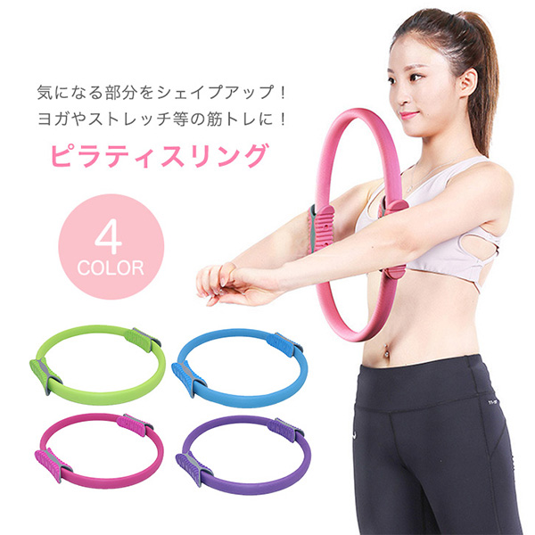 ピラティスリング リング ヨガ ストレッチ 筋トレ トレーニング シェイプアップ 運動 軽量 弾力 滑り止め付き 部分痩せ 背中 二の腕 腹筋 バストアップ ウエスト痩せ 太もも痩せ ダイエット 押す 伸ばす 引っ張る グリーン ブルー ピンク パープル