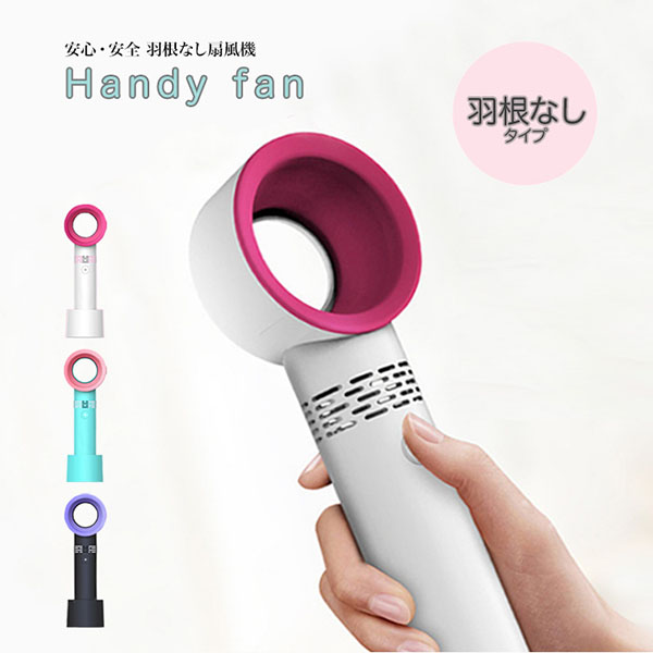 ハンディファン 扇風機 ハンディ扇風機 ハンディ 手持ち ファン 羽なし 安全 持ち運び便利 小型 軽量 風量3段階調節 静音 USB充電式 ブレードレス ホワイト ブラック 暑さ対策 熱中症対策