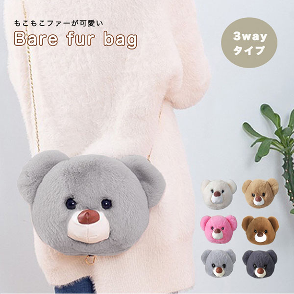 バッグ ベアーバッグ くま ショルダーバッグ ハンドバッグ リュック 3wayバッグ バックパック かわいい 収納力抜群 ファスナー開閉 キュート ショルダーチェーン もこもこ ふわふわ 全6色