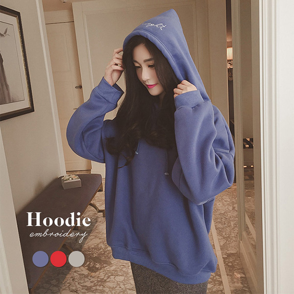 パーカー レディース プルオーバー シンプル 着回し抜群 カジュアル デイリー フード付き 裏起毛 フード紐付き リブ袖 リブ裾 英文字ロゴ 3カラー ブルー ライトグレー レッド フリーサイズ 秋 冬 長袖 かわいい おしゃれ