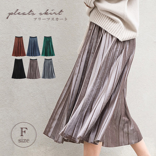 レディース スカート プリーツスカート ミモレ丈 ロング丈 フリーサイズ プリーツ ベルベット かわいい おしゃれ 大人カジュアル 着回し抜群 秋 冬 ベロアスカート 光沢感 上品 Aラインスカート 通勤 通学 デイリー ウエストゴム
