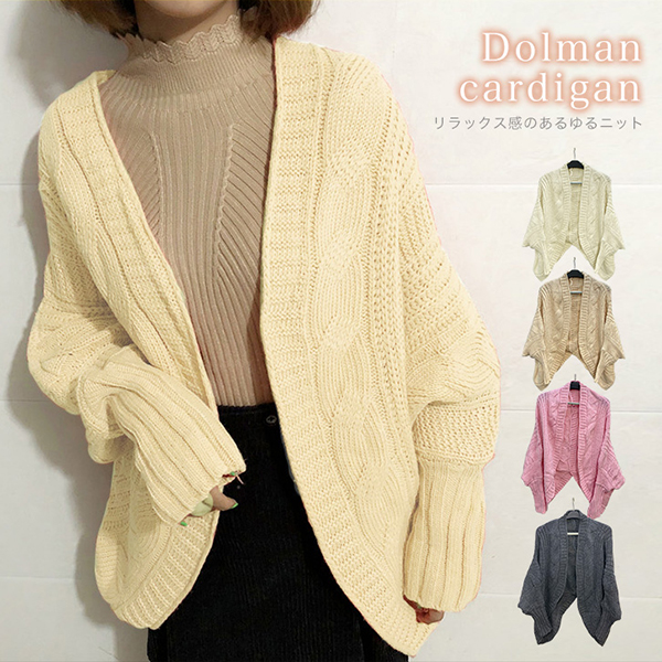 ニットカーディガン ドルマンニット レディース あったか 着心地抜群 ドルマンニットカーディガン ゆるっとフォルム 体型カバー ケーブル編み 全4カラー着回し抜群 キレイめ 大人かわいい ゆるっとシルエット ワンサイズ