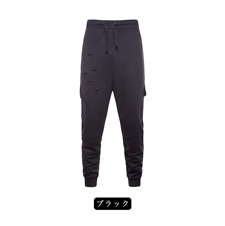 メンズパンツ ジョガーパンツ スウェット ダメージ クラッシュ メンズ おしゃれ イージーパンツ スウェットパンツ ダメージパンツ メンズファッション ブラック Mサイズ 部屋着 モード系 ビジュアル系 ゴシック系