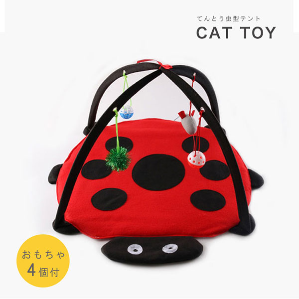 ペットマット ペット用おもちゃ 猫 ネコ テント ペットテント ペット ハウス ベッド マット 猫のおもちゃ 猫用 キャットマット キャット おもちゃ テントウムシデザイン かわいい 玩具 ボール付き 収納可能