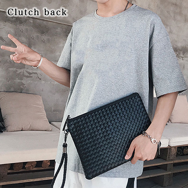 クラッチバッグ PUレザー 高級感 オシャレ メンズクラッチ セカンドバッグ クラッチ PU革 パーティーバッグ 黒 ブラック ビジネス 編み込み おしゃれ かっこいい Mサイズ 中型 合成皮革 オフィスカジュアル
