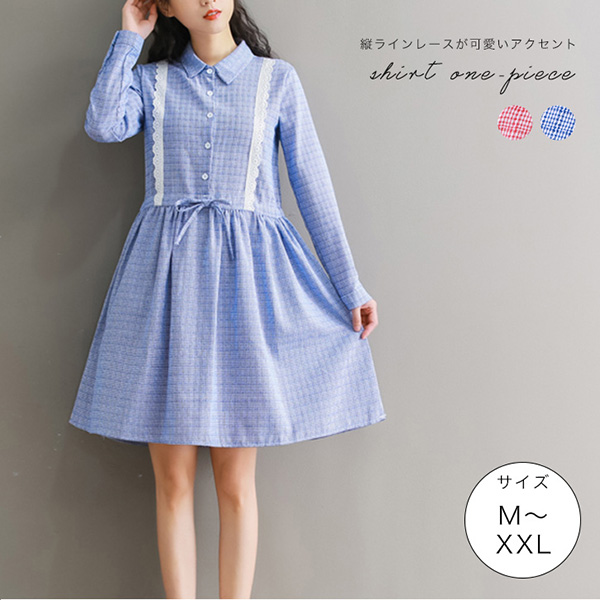 ワンピース レディース シャツワンピース チェック柄 レッド ブルー お洒落 可愛い 女性 涼しい 夏