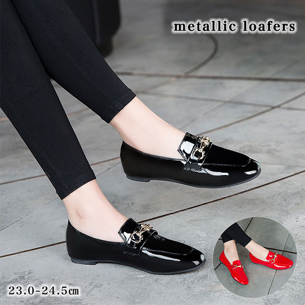 ローファー レディース シューズ レディースローファー マニッシュ エナメル 太ヒール 歩きやすい 疲れにくい おじ靴 ぺたんこ 人気 定番