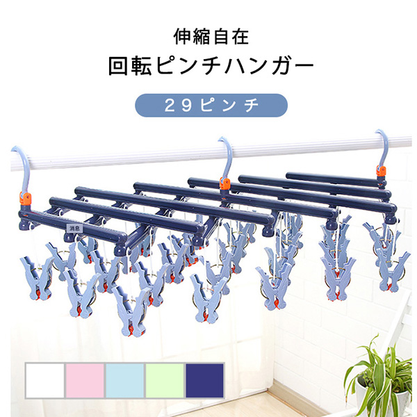 ハンガー 洗濯ハンガー 回転ピンチハンガー 伸縮式 伸縮自在 29ピンチ 伸縮自在回転ピンチハンガー 回転ローラー ローラーピンチ 引っ張るだけ 伸縮可能 省スペース 3点フック式 安定感抜群 洗濯 カラー豊富