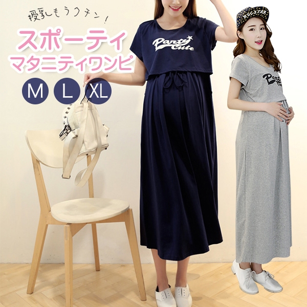 ワンピース マタニティワンピース 半袖 ミモレ丈 ミモレ丈ワンピース マタニティワンピ マタニティ ワンピ らくちん カジュアル 大人かわいい シンプル スポーティー ネイビー グレー ルームウェア デイリー 通気性抜群