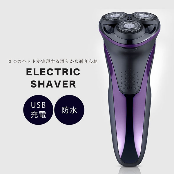 電動シェーバー シェーバー 三枚刃 髭剃り 電動 USB充電 防水 剃り心地滑らか 水洗い可能 便利 コンパクト USB充電ケーブル付き 360度回転シェーバー 髭剃り電動 防水シェーバー