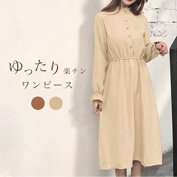 ワンピース レディース 長袖 ミモレ丈 ロングワンピース フリルネック 無地 可愛い シンプル ミモレ丈ワンピース キュート きれいめ フェミニン ガーリー 大人かわいい春 秋 ロングワンピ ゆったり かわいい おしゃれ