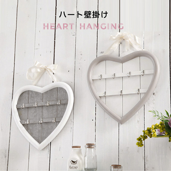 壁掛けフック 壁掛け ハート かわいい おしゃれ キュート フック キーフック 鍵 ウォールデコレーション カントリー調 可愛い アクササリー ネックレス インテリア 木目風 ナチュラル クラシック ホワイト ライトグレー アクセント