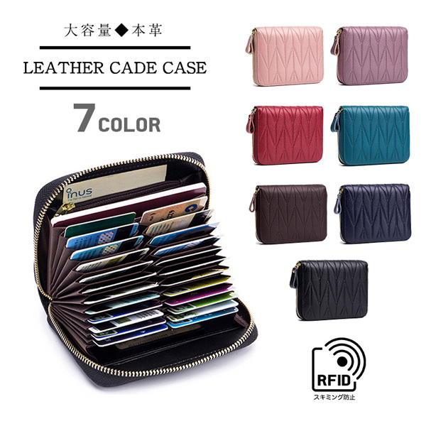 カードケース レディース 大容量 じゃばら 本革 カード入れ シンプル カラーバリエーション豊富 カラバリ 全7カラー ファスナー開閉 スキミング防止 150度開閉 出し入れラクラク 大容量収納可能 磁気防止 見やすい