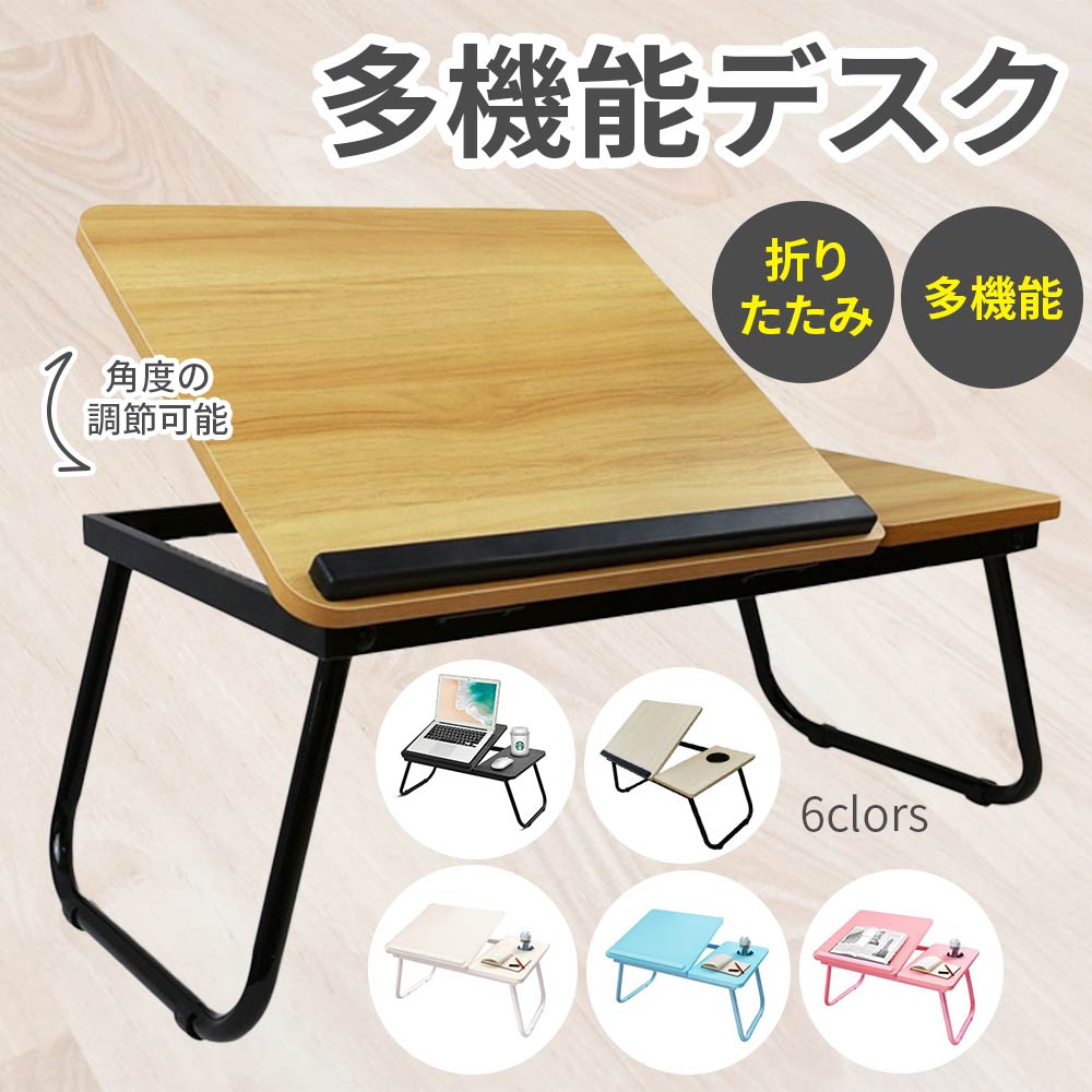 テーブル 折りたたみ 折りたたみテーブル ベッドテーブル ミニテーブル ローテーブル 幅55cm 多機能 コンパクト 軽量 折り畳み 一人暮らし 小型 持ち運び便利 折れ脚 角度調節可能 カップホルダー アウトドア テレワーク リモート