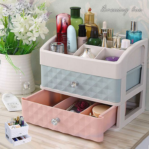 コスメボックス 2D メイク 収納 メイクボックス 化粧 ボックス コスメ 収納ケース 化粧品 コスメ収納 スタンド化粧品入れ リモコンラック 机上収納ボックス 多機能小物収納ボックス 2段引き出し付き 筆入れ おしゃれ