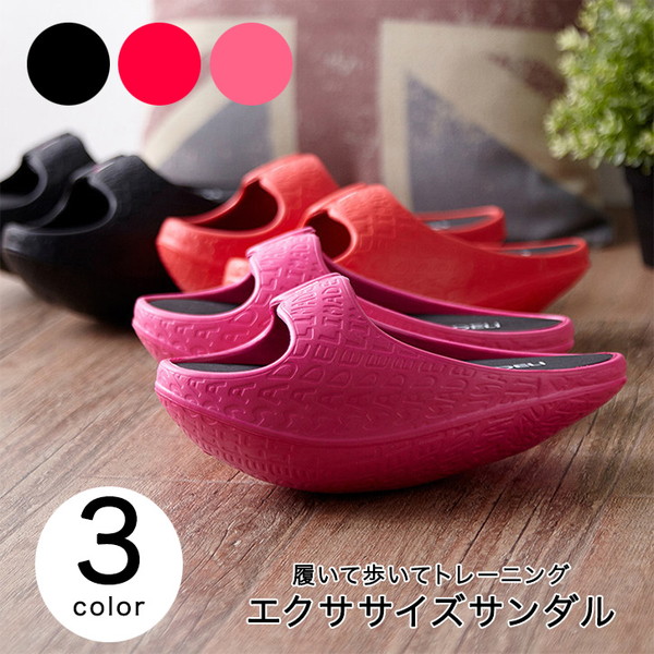 サンダル エクササイズサンダル エクササイズ トレーニング 歩くだけ 履いて歩くだけ 脚痩せ 脚痩せトレーニング 体幹 ピンク レッド ブラック 室内 スリッパ 健康 ダイエット 体感トレーニング ふくらはぎ 太もも ヒップ