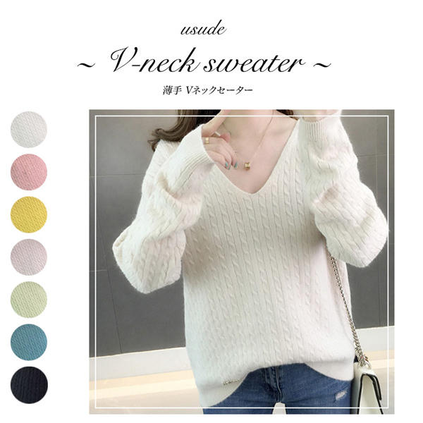 セーター レディース 長袖 Vネック 秋 冬 春 薄手 シンプル 無地 レディースセーター Vネックセーター シンプルセーター 着回し抜群 合わせやすい 大人かわいい カジュアル カラー豊富 カラーバリエーション 全7色 7カラー