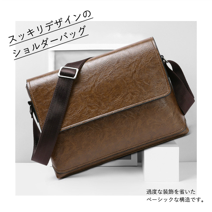 バッグ ショルダーバッグ メンズショルダーバッグ メンズ メンズバッグ シンプル ベーシック 無地 高級感 合わせやすい 合皮レザー デイリー カジュアル 通勤 オンオフ マグネットボタン 収納力抜群 ブラック ダークブラウン ブラウン オールシーズン