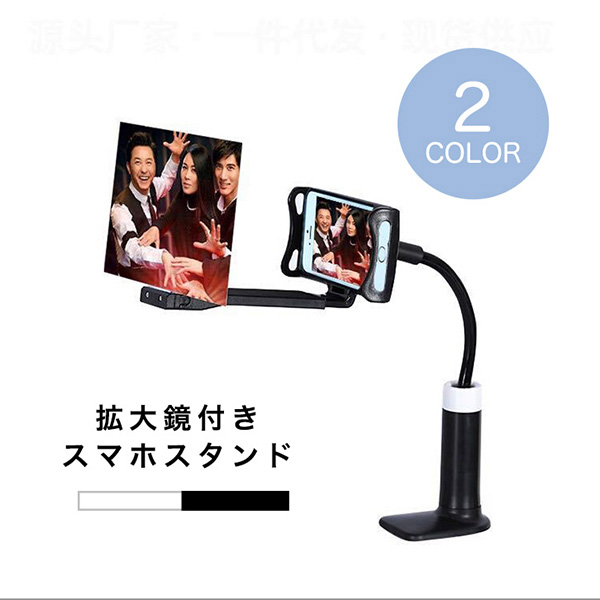 スマホスタンド 拡大鏡付き 拡大鏡付きスマホスタンド ブルースクリーン 疲労軽減 ハンズフリー iPhone Android スマートフォン スマホ 拡大鏡取り外し可能 フレキシブルアーム アーム調節可能 動画視聴 角度調節可能