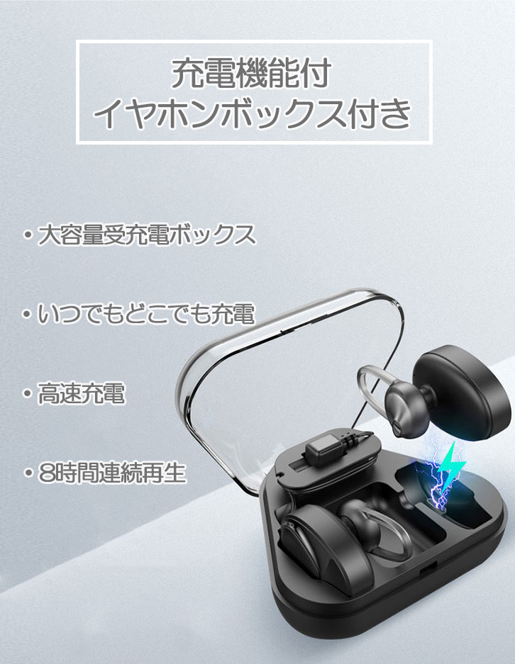 ワイヤレスイヤホン Bluetooth4.2 充電ケース付 ワイヤレス ハンドフリー マイク付 片耳 両耳 ノイズキャンセル ハンズフリー通話 iPhone Android 高音質 ブラック 黒