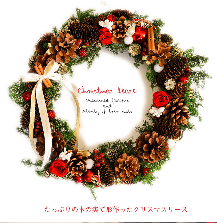 クリスマスリース ナチュラルリース プリザーブドフラワー 木の実 たっぷり クリスマスリース 28cm 存在感 ソフトヒムロスギ