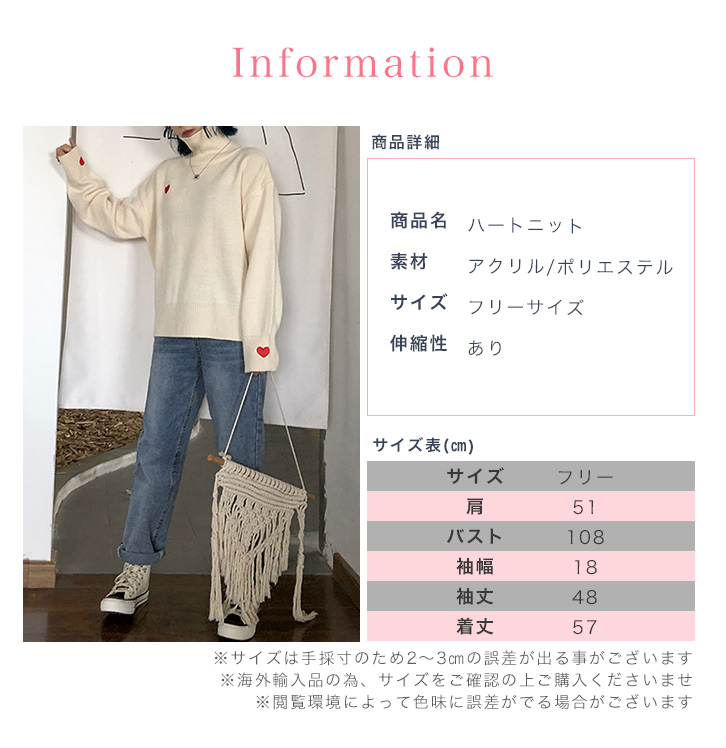 ニット レディース シンプル ゆったり ハート ワンポイント おしゃれ かわいい カジュアル リラックス ゆったりシルエット ベージュ ブラック レッド フリーサイズ ハートニット 長袖 秋冬 着回し抜群