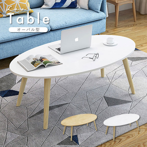 テーブル センターテーブル カフェテーブル ティーテーブル リビングテーブル おしゃれ 北欧 インテリア 丸 幅87cm コーヒーテーブル ナチュラル 白 ホワイト 木製テーブル 木製 デスク 机 つくえ 楕円形 オーバル型 丸テーブル シンプル モダン