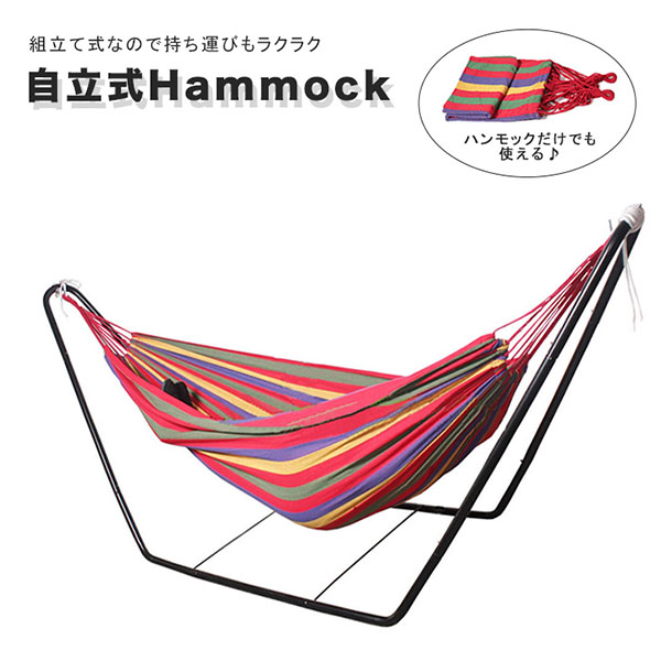 ハンモック 自立式ハンモック 組み立て式 持ち運びラクラク アウトドア ガーデン リビング 組み立て簡単 工具不要 キャンプ お庭 2wayタイプ 寝心地抜群 強化スリング 収納袋付き