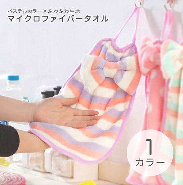 ループタオル タオル リボン ふわふわタオル りぼん ボーダー 厚手タオル かわいい お洒落 便利 引っ掛けられる