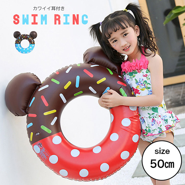 子供用浮き輪 浮き輪 50cm 浮き輪50cm ドーナツ柄 耳付き プール用品 浮輪 海水浴 水遊び用品 子ども用 うきわ キッズ ウキワ 水物 50cm以下 浮き輪 子供 子供用 こども用 ビーチグッズ