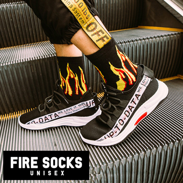 靴下 ソックス ショート丈 ユニセックス ファイヤー 炎 おしゃれ インパクト抜群 メンズ レディース 男女兼用 ストリート スポーティー ロック ファイヤー柄 ミドル丈 くつ下 アメカジ フリーサイズ かっこいい オシャレ アクセント