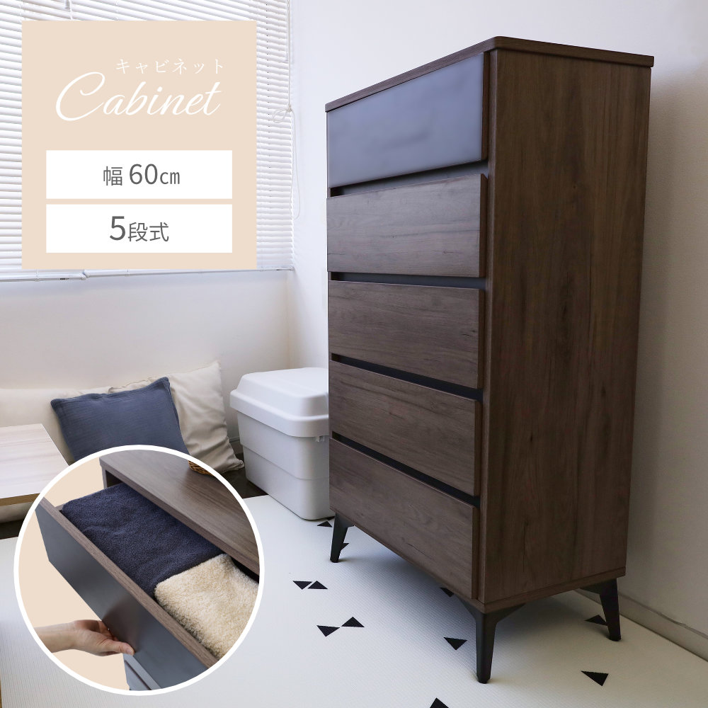 キャビネット チェスト 収納 スリム 5段 モダン シック 収納棚 衣類収納 脚付き