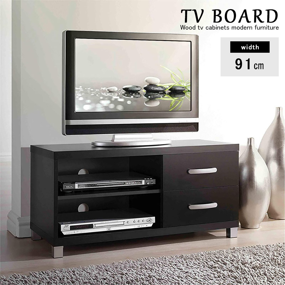 テレビ台 テレビボード テレビスタンド TV台 TVボード TVスタンド テレビラック モダン スタイリッシュ 幅91cm ブラック シンプル おしゃれ オープン収納棚 引き出し 2段 収納力抜群 大容量収納 奥行39cm 高さ45cm 収納