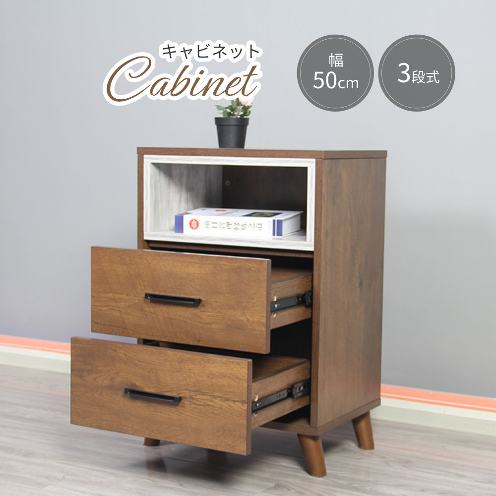 キャビネット シェルフ サイドボード 収納 引き出し付き 3段 シンプル ナチュラル リビング 寝室 収納力抜群 幅50cm スリム 省スペース スリムボード 奥行35cm 高さ74cm コンパクト 一人暮らし モダン