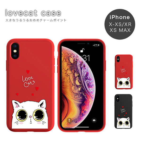 アイフォンケース スマホケース iPhone ケース XS XR Xsmax レッド ブラック 赤 黒 シリコン TPU 猫 ネコ 可愛い お洒落