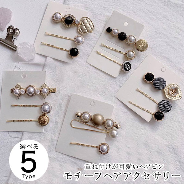 ヘアピン ピン ヘアクリップ ヘアアクセサリー 3個セット ヘアアクセ ヘアアレンジ かわいい 重ね付け 5タイプ アンティーク 可愛い おしゃれ ヘアクリップ アクセント オシャレ レトロ タイプ豊富 パール ハート チェック柄