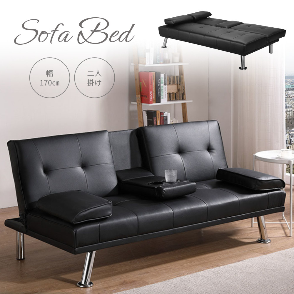 ソファベッド ソファーベッド ソファ ソファー 折りたたみソファベッド 二人掛け 折りたたみ 2wayソファ 幅170cm シンプル スタイリッシュ ブラック 黒 ドリンクホルダー カップホルダー リビング おしゃれ