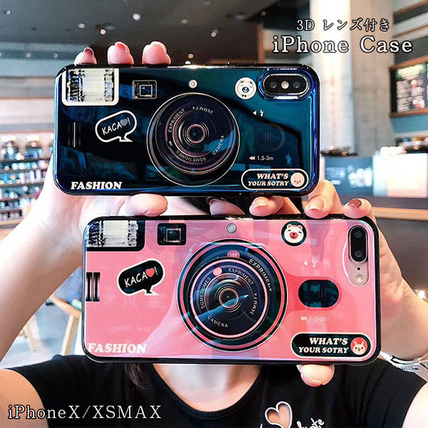 iPhoneケース iPhone カバー ケース 立体レンズケース レンズ付き カメラ風 立体レンズ付き クラシックカメラ風 TPU 着脱簡単 おしゃれ 映える ピンク ブルー iPhoneXS iPhoneXSMAX