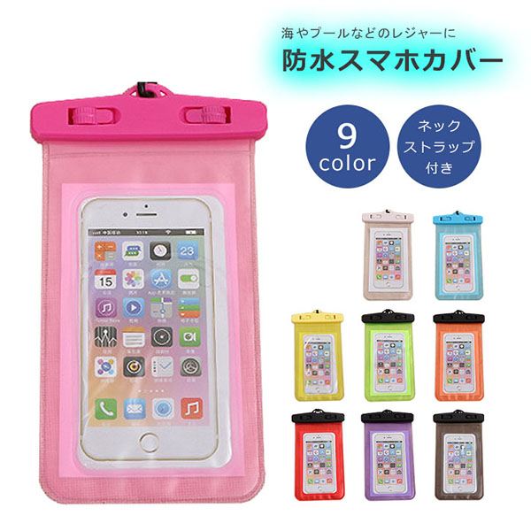 防水スマホカバー 防水ケース カバー ネックストラップ付 ストラップ長80cm 6インチ対応 PVC 9色展開 iPhone android スマートフォン