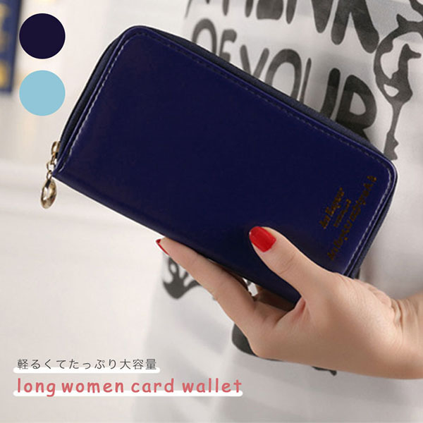 長財布 レディース財布 ロングウォレット シンプル 大人可愛い 英語ロゴ入り 多収納 収納力抜群 大容量 ネイビー ブルー 軽量 オシャレ 使いやすい 開閉ファスナー 財布 ウォレット
