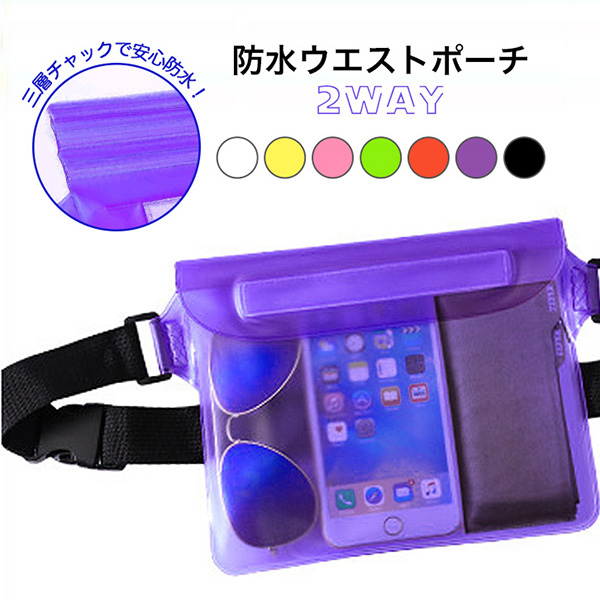 ウエストポーチ 防水 防水ウエストポーチ 2way レディース メンズ 三層チャック カラー豊富 カラバリ豊富 カラーバリエーション マジックテープ クリア素材 クリアウエストポーチ マリンスポーツ 釣り 登山 プール ビーチ 海