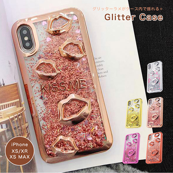 iPhoneケース グリッターケース グリッター アイフォンケース キラキラ オシャレ キスマーク おしゃれ かわいい TPU素材 カラー豊富 グリッターiPhoneケースiPhoneXS iPhoneXR iPhoneXSMAX
