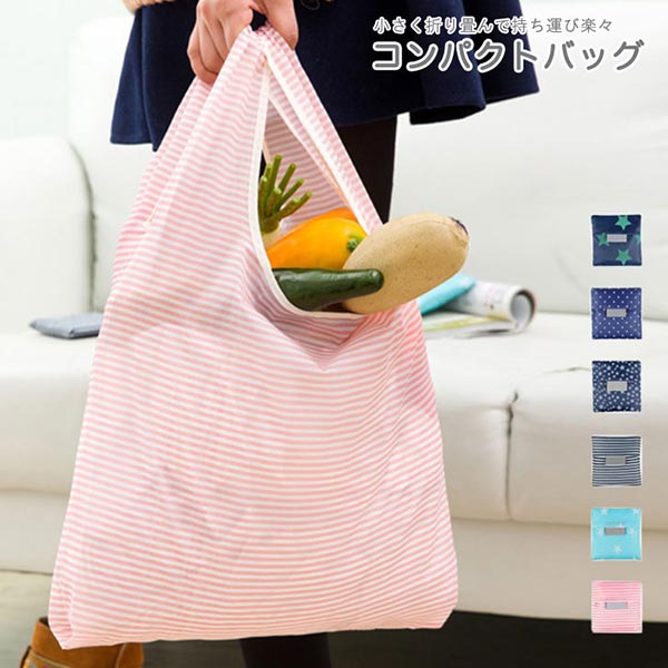 エコバッグ 折りたたみ 超軽量 買い物バッグ スター柄 ストライプ柄 水玉 ショッピング コンパクト バッグ トートバッグ 手提げ袋 持ち運び便利 エコ おしゃれ かわいい 折りたためるエコバッグ