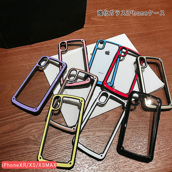 iPhoneケース アイフォン ケース カバー 背面強化ガラス ガラスケース 背面 背面ガラス 耐衝撃 iPhoneXS iPhoneXR iPhoneXSMAX TPU 強化ガラス カラー豊富 カラバリ 全9色 シンプル